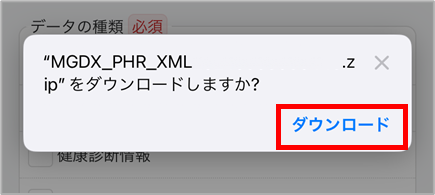 4. 「ダウンロード」を選択し、端末にzipファイルをダウンロード